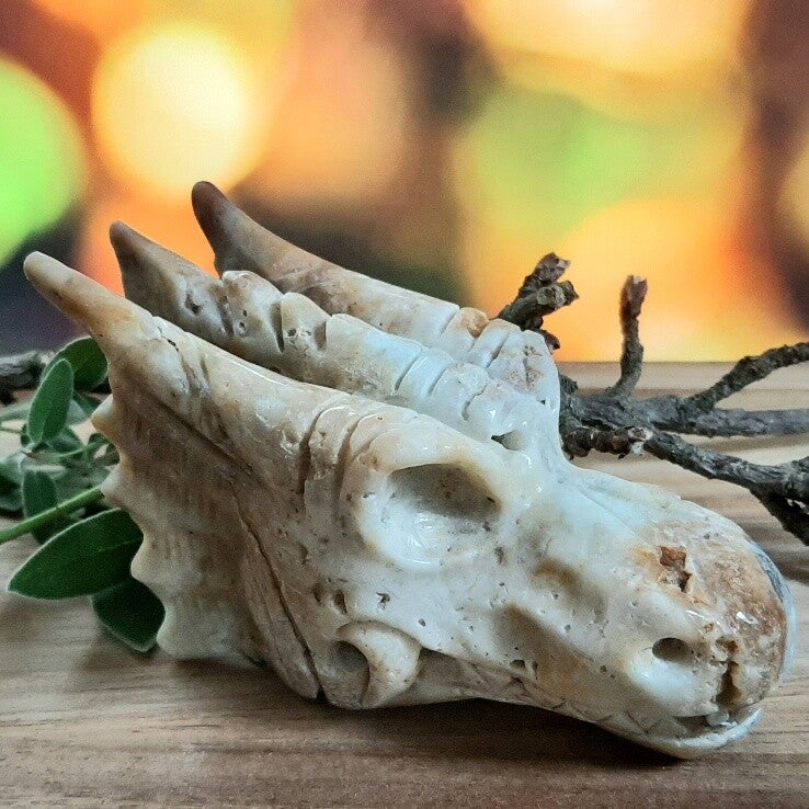 Draak uit Caribbean calciet en ondanks wat de naam doet vermoeden heeft deze steen niks te maken met de Caraïben.Deze wordt gevonden in Pakistan.